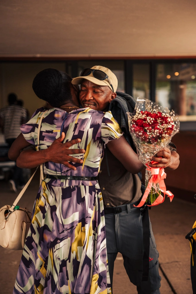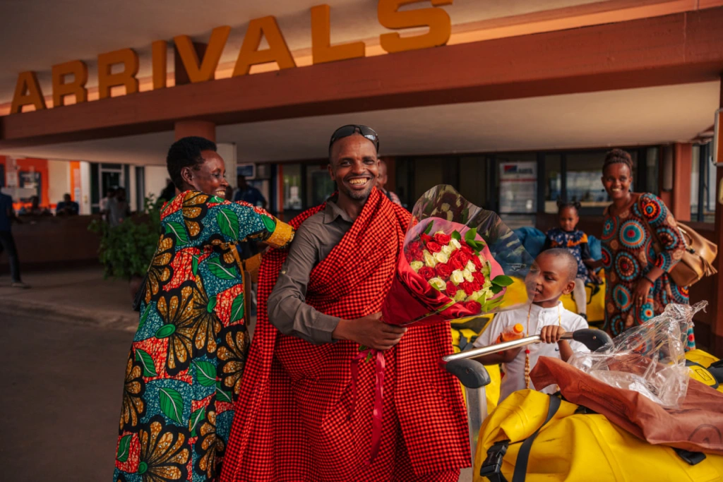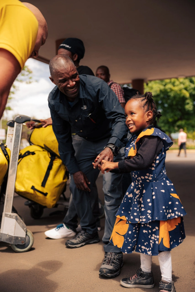 A su regreso al aeropuerto, los guías recibieron una cálida bienvenida. Sus familias, junto con los directivos de Altezza Travel, estaban allí para recibir a los escaladores tras su éxito. La llegada estuvo cargada de emoción: era la primera vez que los guías salían de Tanzania y la falta de comunicación, debido a la escasa cobertura satelital en el Himalaya, había sido una fuente de preocupación para sus familias.