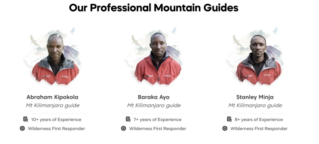 En empresas bien establecidas, existen protocolos de seguridad, y el equipo de montaña trabaja de manera fluida con la oficina en caso de emergencias. También cuentan con transporte confiable. Los guías están entrenados en primeros auxilios y conocen bien todas las rutas y campamentos del Kilimanjaro. Con 10 a 15 años de experiencia y expediciones regulares, tienen un profundo conocimiento de la geografía, la naturaleza y los desafíos de la montaña — siempre tienen algo valioso que compartir con los escaladores.