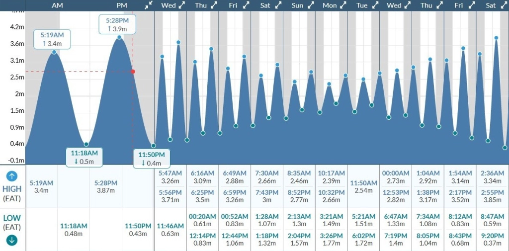 Basta con buscar en Google “horario de mareas” para encontrar una web o aplicación práctica y seleccionar tu ubicación (Tanzania, Zanzíbar). Elige la app que más te guste y podrás consultar fácilmente los horarios de las mareas durante tu estancia.